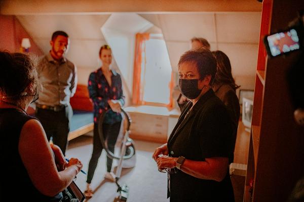 A new BBC One prime time crime thriller is being filmed across south Wales and today Deputy Minister for Arts and Sport, Dawn Bowden had a behind the scenes look at filming at the iconic Enfys studios in Cardiff, and met with the trainees working on the production.