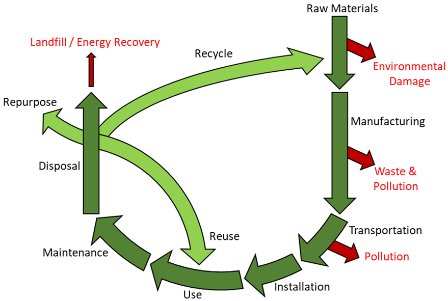 - Take a life cycle thinking approach to procurement that considers all aspects from raw materials used, issues arising in manufacture, usage (of products) / delivery of services, through to end of use / disposal / waste arisings.